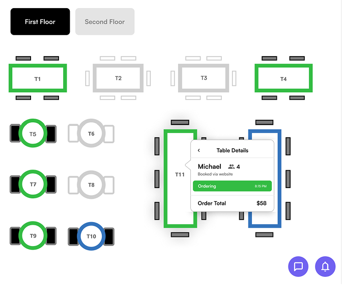 Every reservation instantly reflects on your floor plan, so your team stays organized and overbooking never happens.